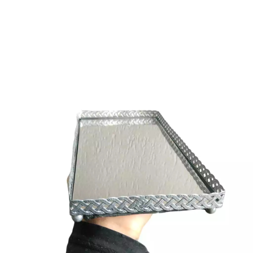 Linda bandeja de metal espelhada, com lindos detalhes,