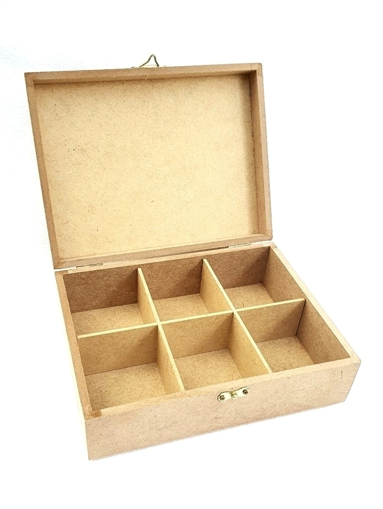Linda caixa em Mdf com fecho, dobradiças e 6 divisões removíveis