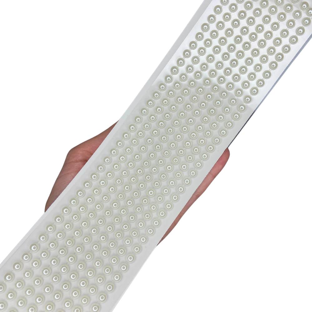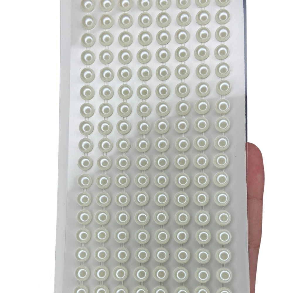 CARTELA DE MEIA PEROLA ADESIVA, JÁ VEM RECORTADA EM TIRAS PARA FACILITAR O MANUSEIO.