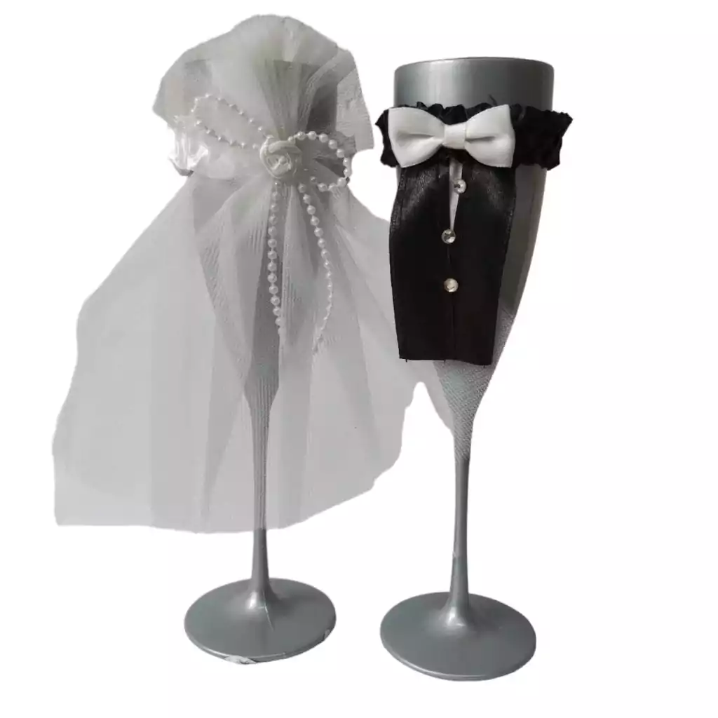 Lindo enfeite em tecido para colocar em taças para os noivos.
