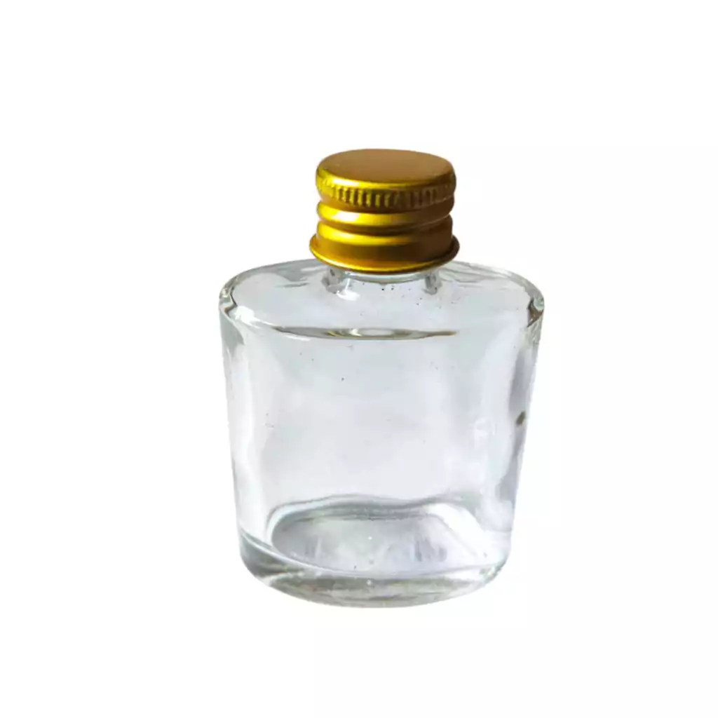 Lindo frasco de vidro achatadinho com tampa metálica