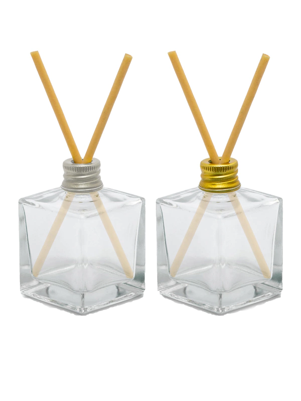 FRASCO EM VIDRO COM TAMPA METÁLICA PRATA DIFUSORA (A TAMPA POSSUI FURO NO MEIO E UMA BORRACHA PARA SER RETIRADA SOMENTE NA HORA DO USO).
