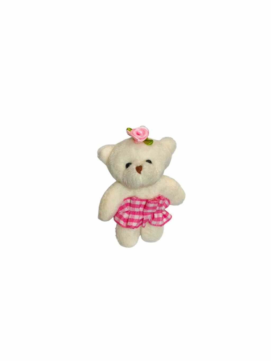 Linda ursinha de pelúcia cor creme com roupinha xadrez