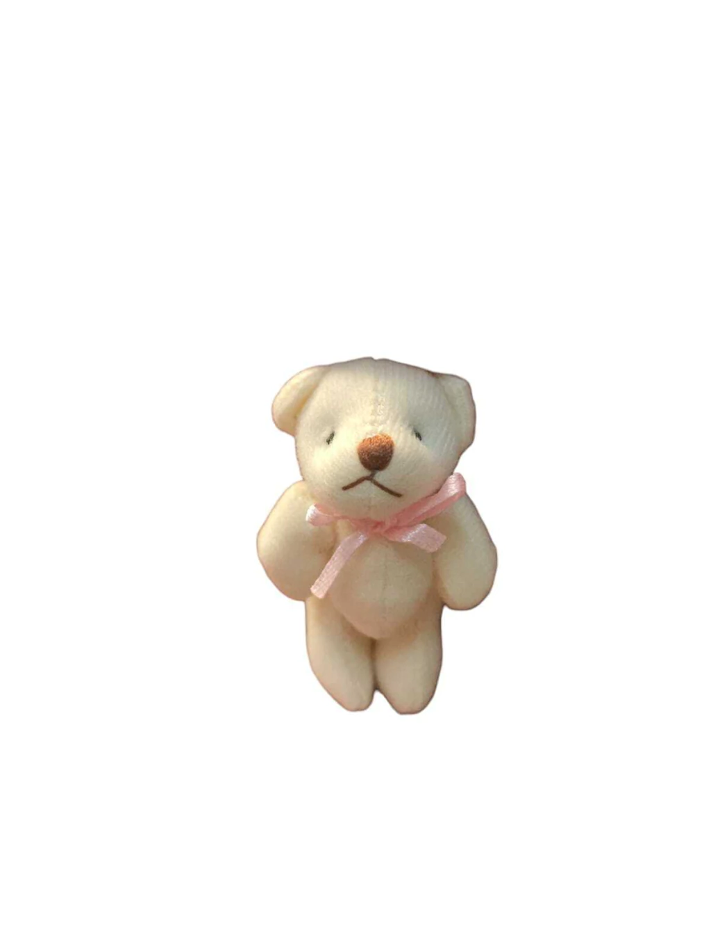 Lindo ursinho de pelúcia cor creme com lacinho rosa
