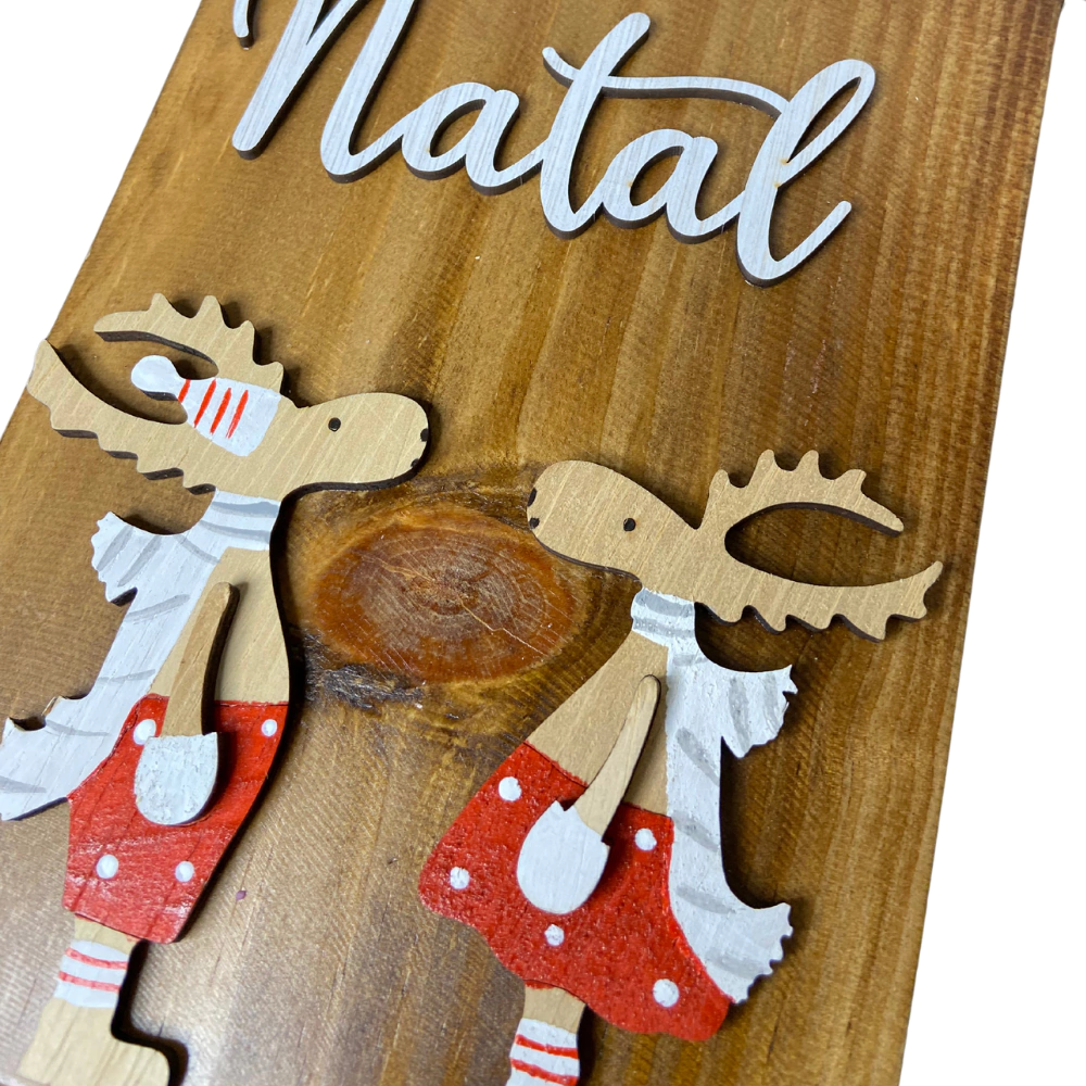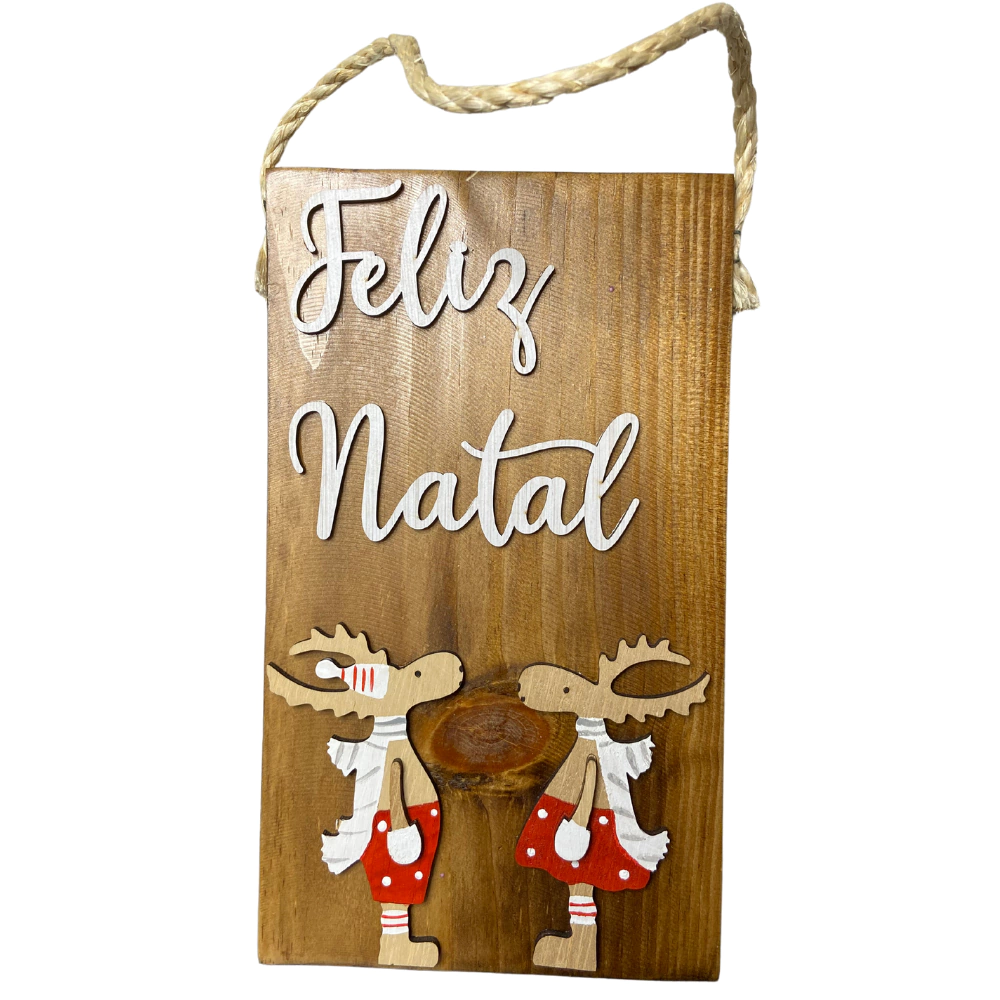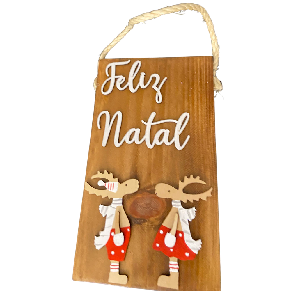 Decore e encante com esta linda placa de Feliz Natal, com a linda composição do casal de alces a sua decoração vai ganhar o toque que faltava!