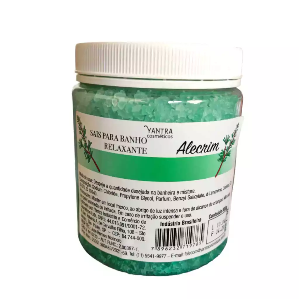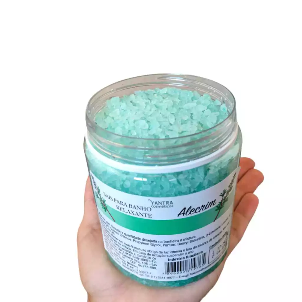 Sais para banho, relaxante, revigorante e com aroma de Alecrim.