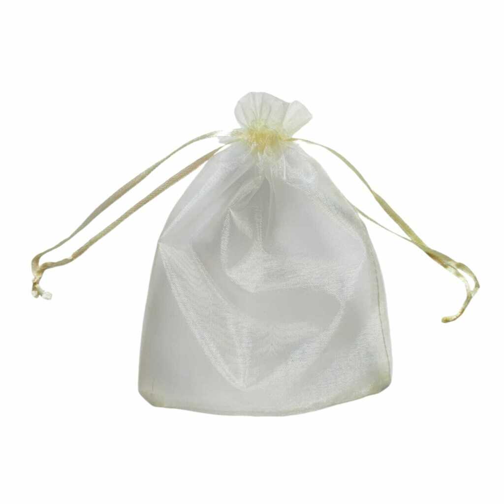Saquinho em tecido organza com fita de cetim para puxar e fechar