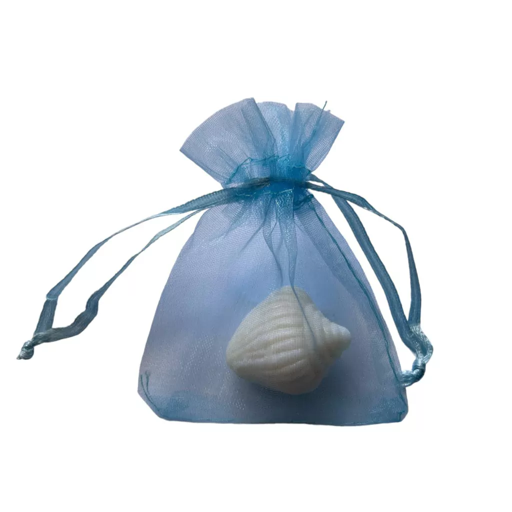 Saquinho em tecido organza com fita de cetim para puxar e fechar